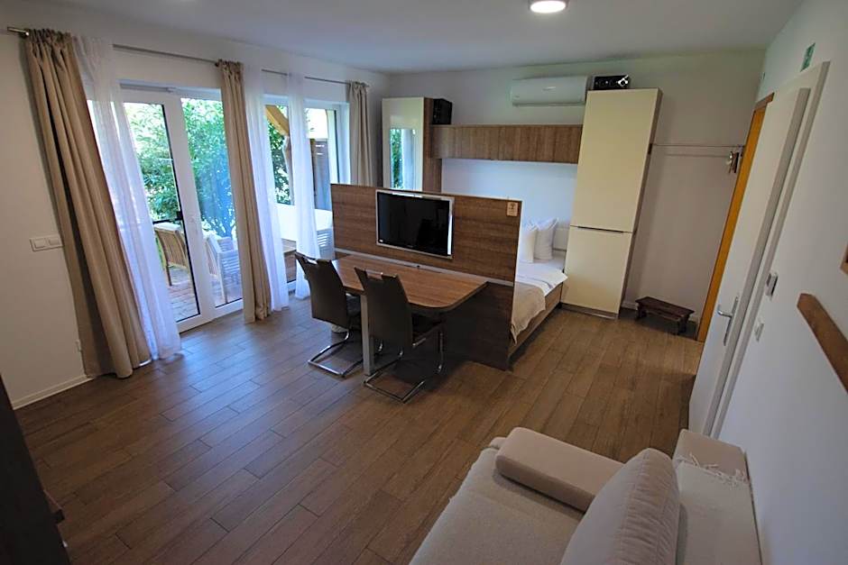 Guests will find a stovetop, a refrigerator, kitchenware and a microwave in the well-fitted kitchen. The studio also comes with a barbecue. This air-conditioned studio is consisted of of a flat-screen TV with cable channels, a private bathroom as well as a terrace with garden views. The unit has 2 beds.